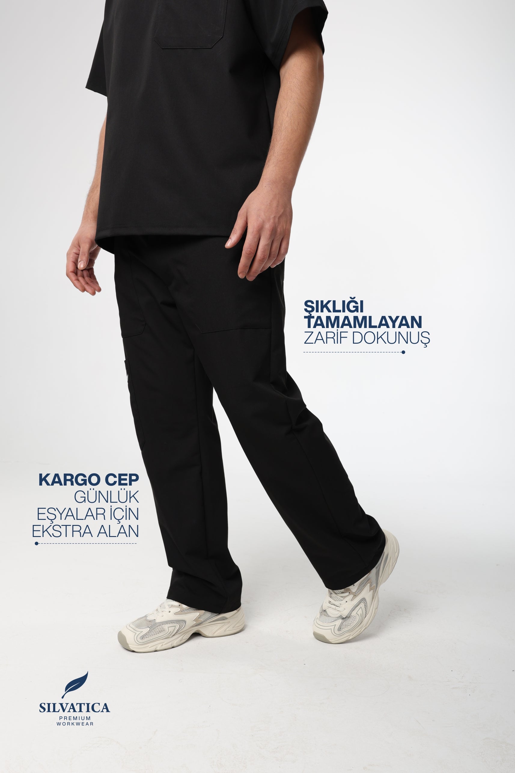 Silvatica Ares ® Erkek Medikal Pantolon – Black Petite & Regular | Premium Scrubs Alt