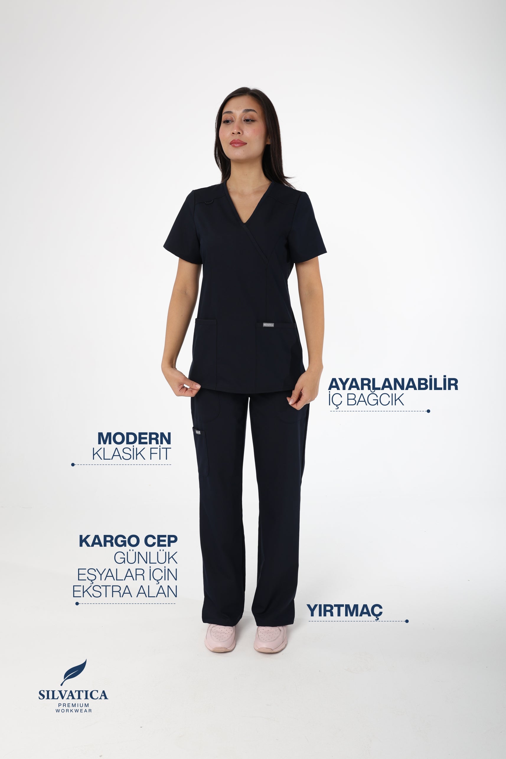 Silvatica Marfa® Kadın Medikal Pantolon – Navy Blue Petite & Regular | Premium Scrubs Alt